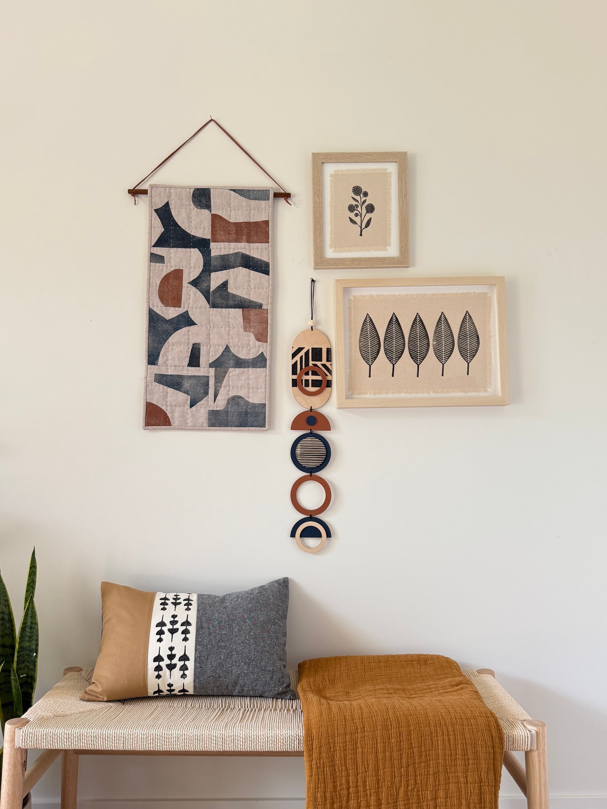 Block Printed Textile Art - Leaf Print