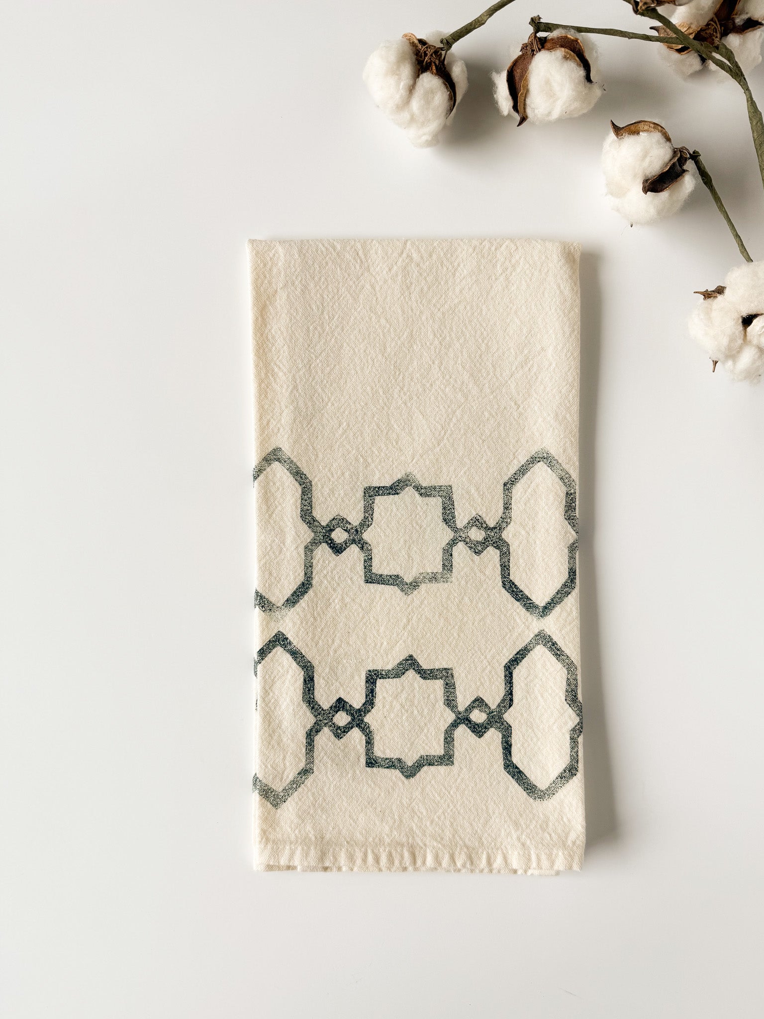 Tea Towel - Block Printed - Lattice Design